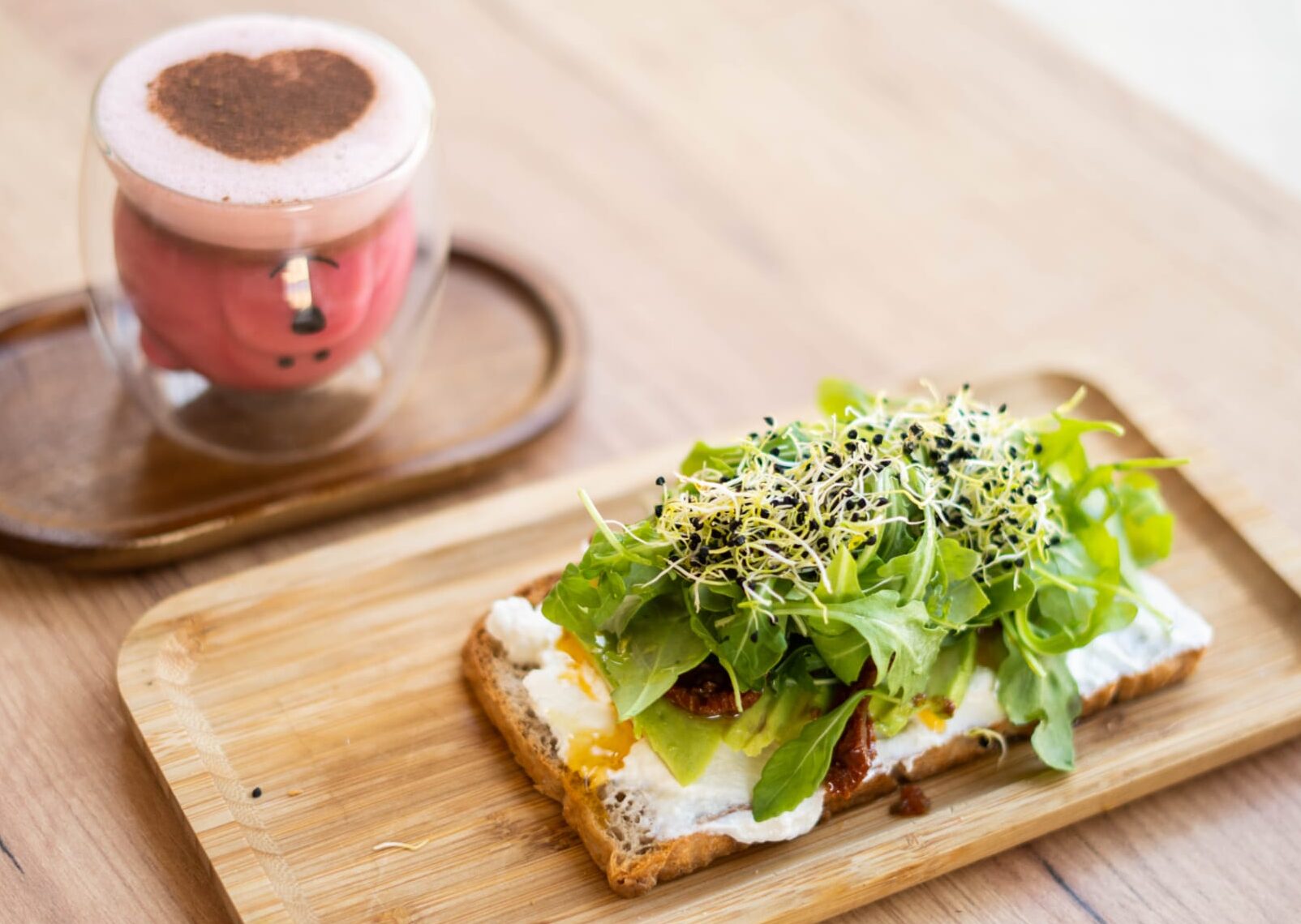 Base de aguacate, ricotta, burrata italiana, tomates secos, rúcula y germinados de cebolla. 8,90 €