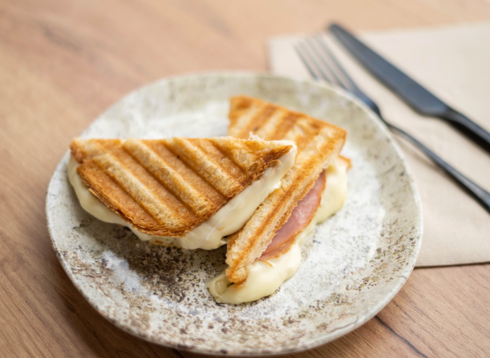 Pan sin gluten artesano, queso Edam derretido y jamón cocido extra. ¿Quieres darle un toque especial? Cambia el jamón por mortadela italiana o muslo de pavo (+1 €). 4 €